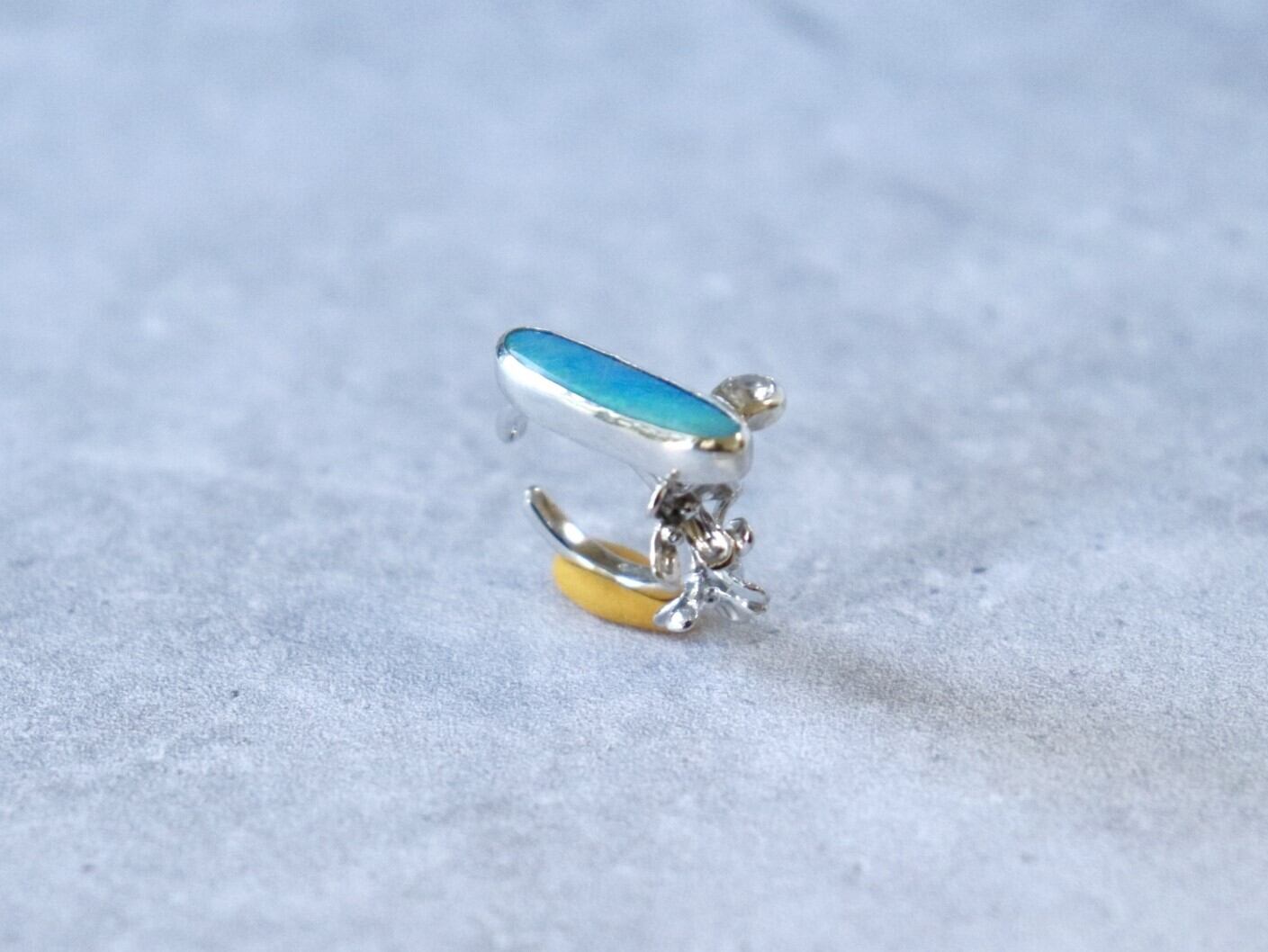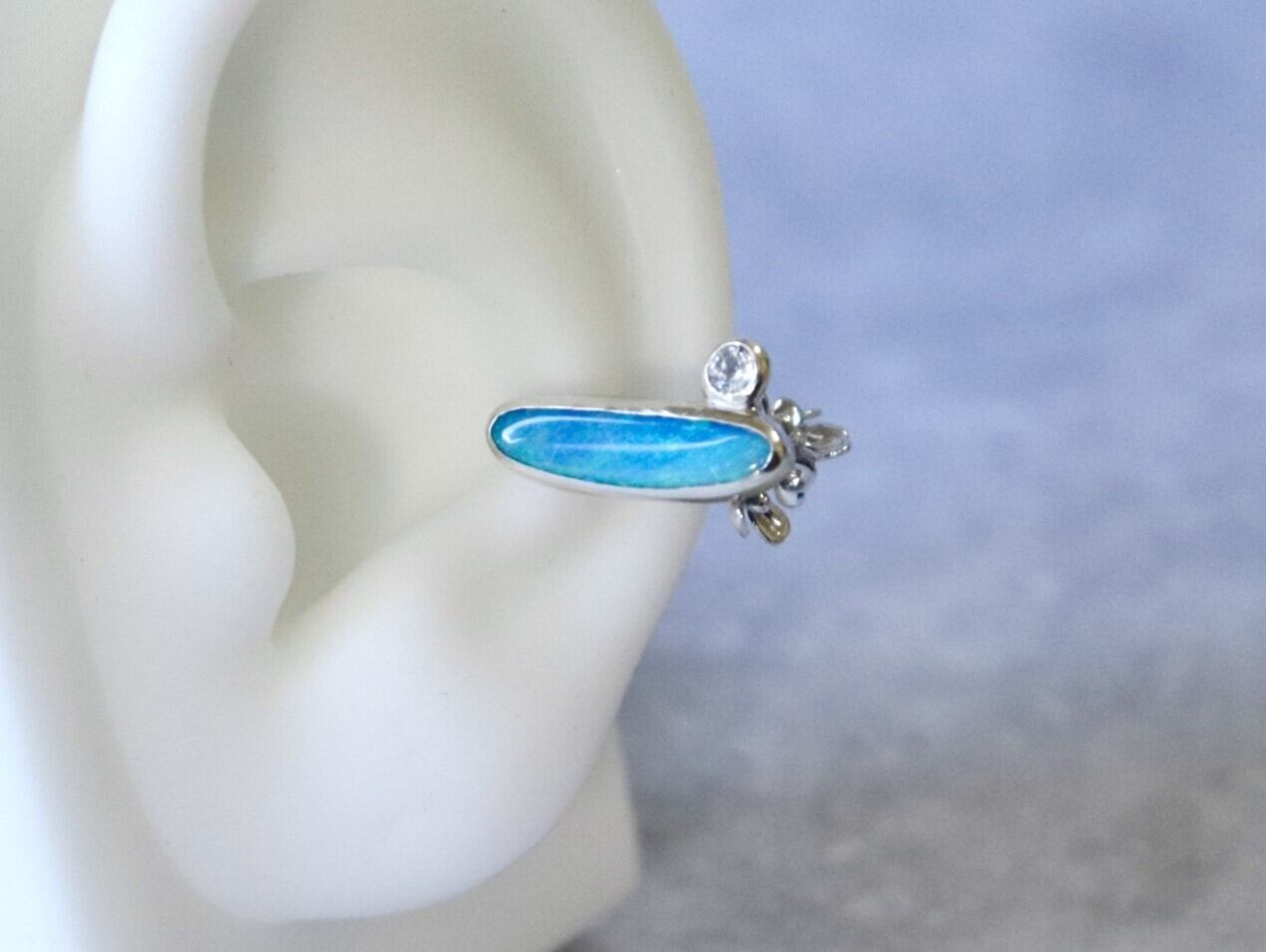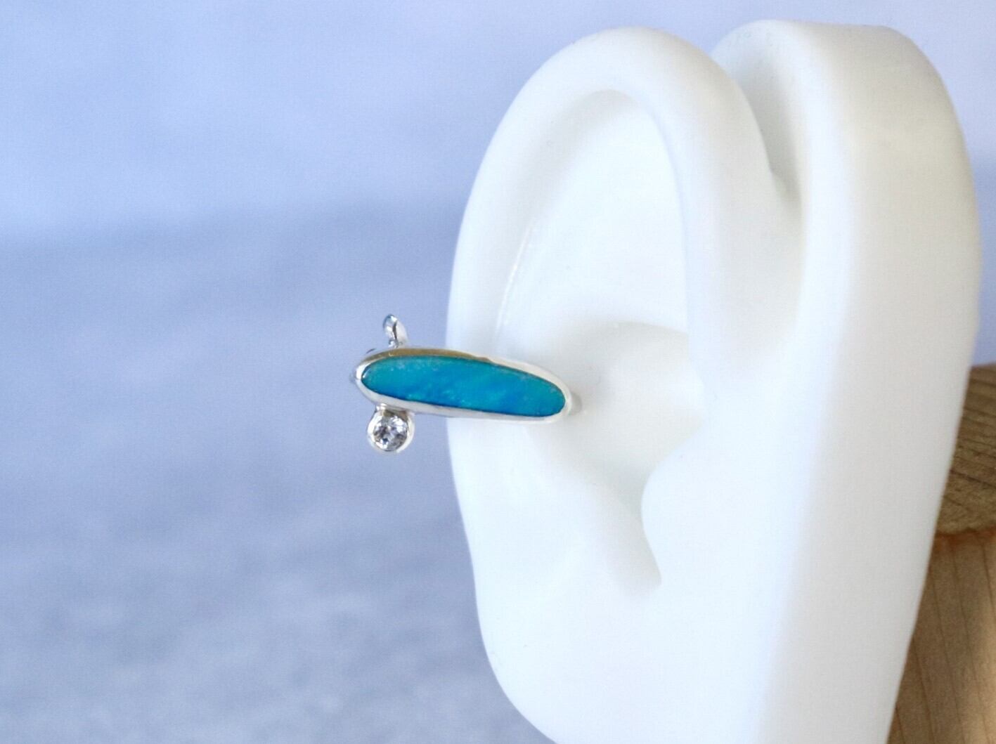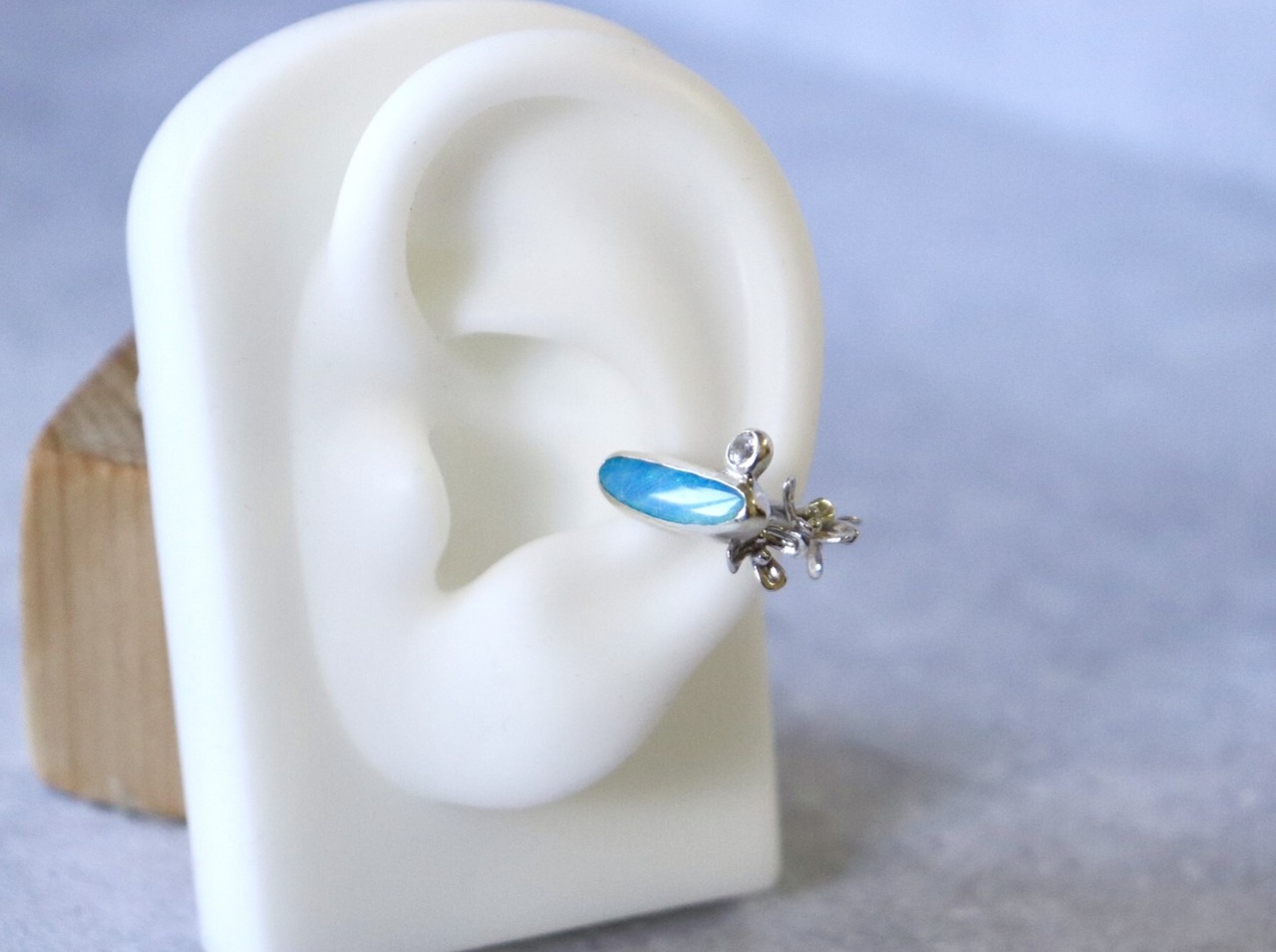 清楚な銀木犀の花と個性的な形のオパールを組み合わせたイヤーカフになります。