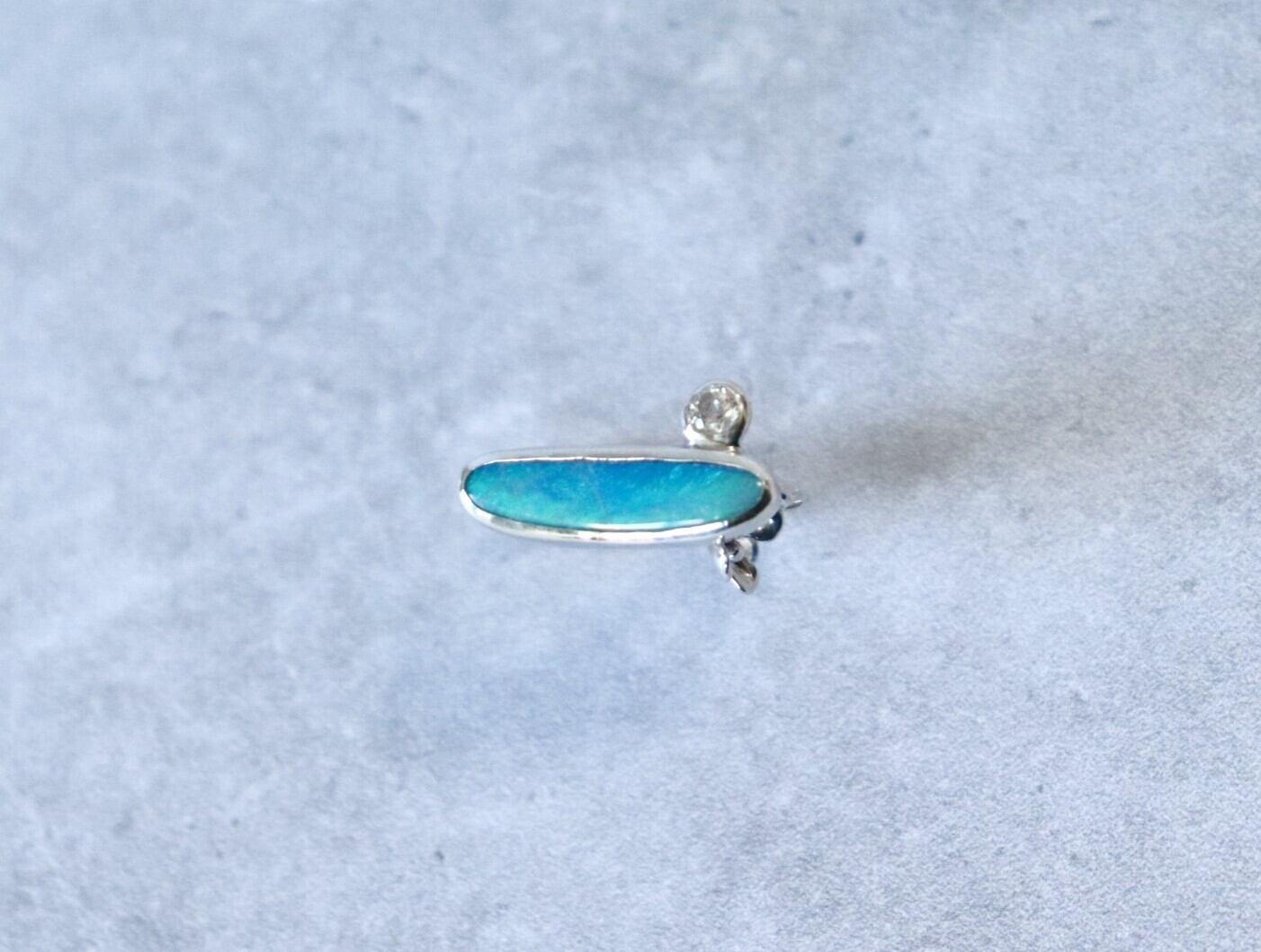 正面からみると晴れた青空のような色合いのオパールとホワイトトパーズが